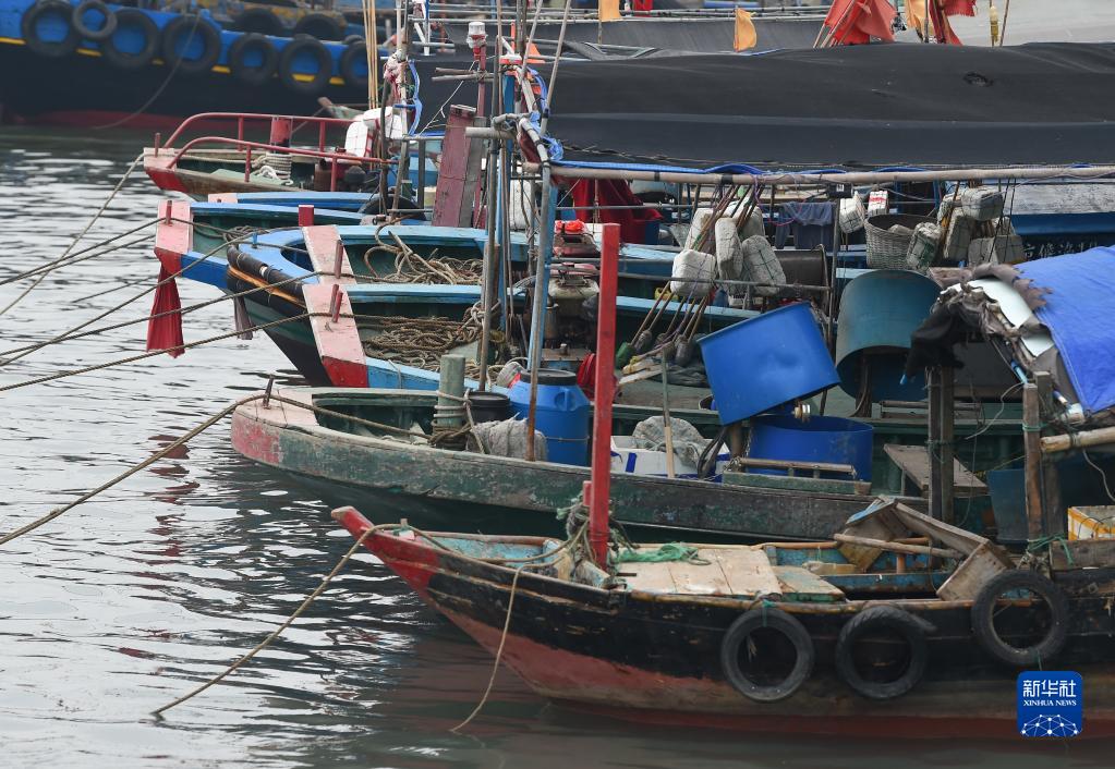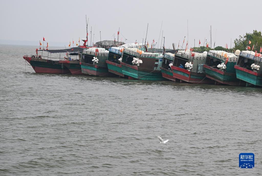 9月27日,渔船在海南儋州白马井中心渔港停靠避风。新华社