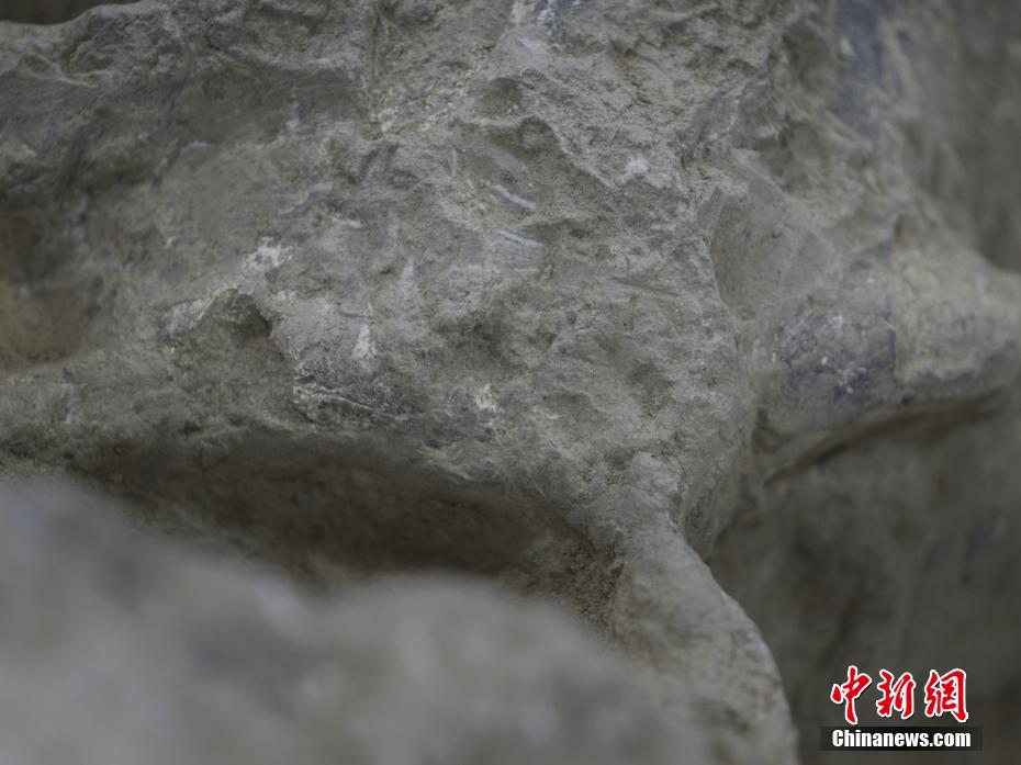 “郧县人”3号头骨化石正面照。中新网