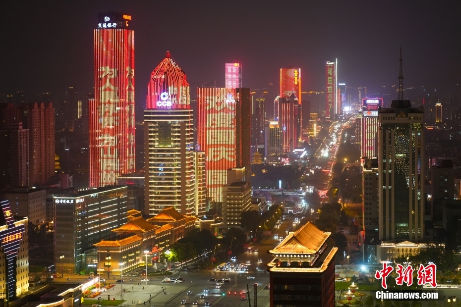 9月29日,山西太原迎泽大街高楼亮灯迎国庆。 中新网