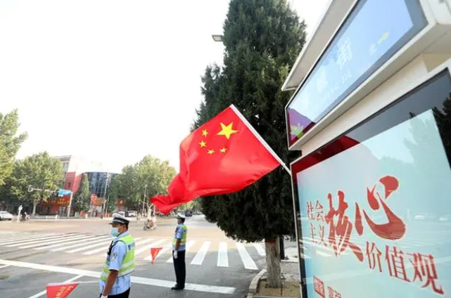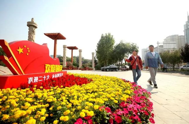 鲜花簇拥、国旗飘扬,中国国庆节前夕各地举办多种方式,营造喜庆祥和的国庆节日气氛,大街小巷、社区公园以及单位厂区门口,到处一片喜庆景象。
