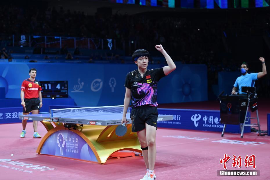 中国男子乒乓球队员王楚钦(中)在比赛中。中新网