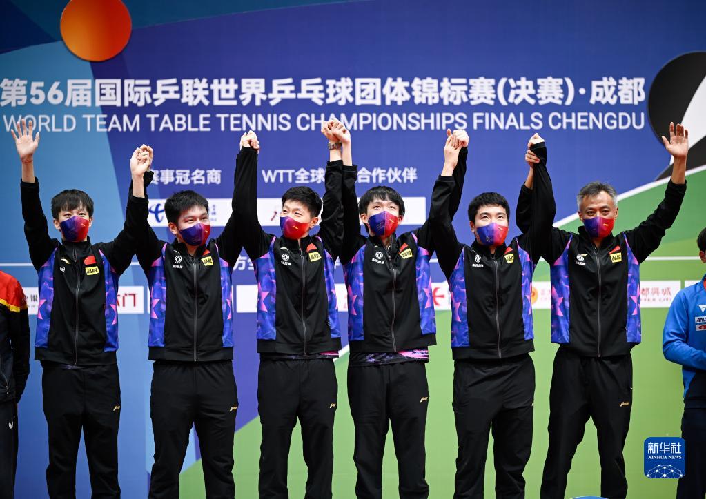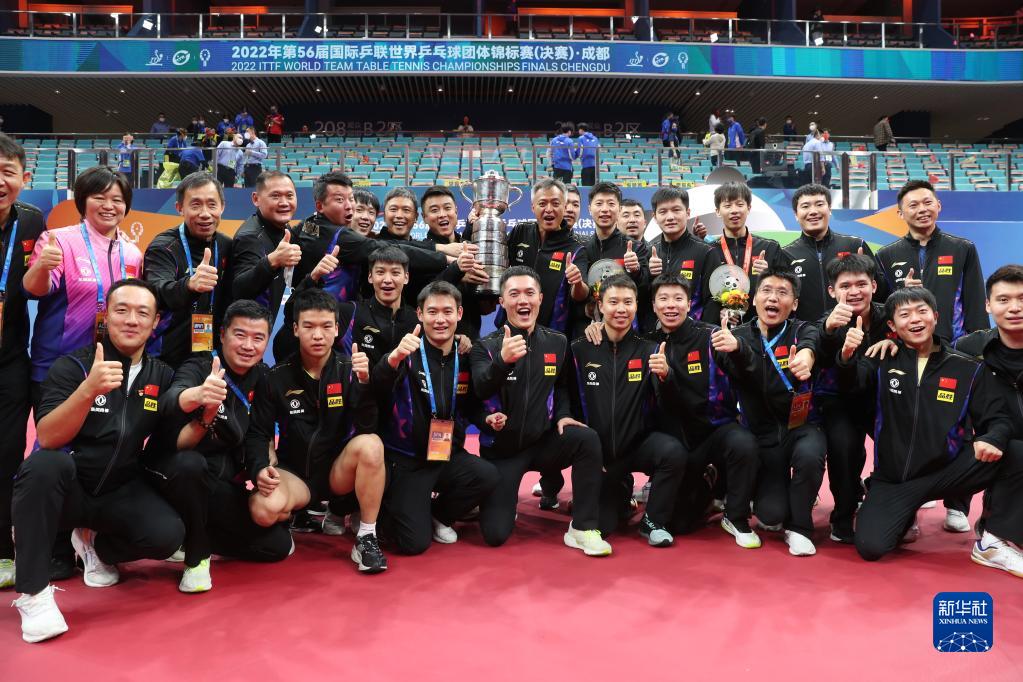 10月9日,在成都举行的第56届世界乒乓球团体锦标赛正式落下帷幕。在当日的团体男子决赛中,中国队以3比0战胜德国队,夺得冠军,也实现了世乒赛男团十连冠。