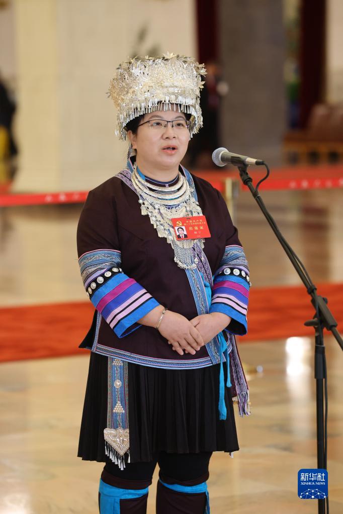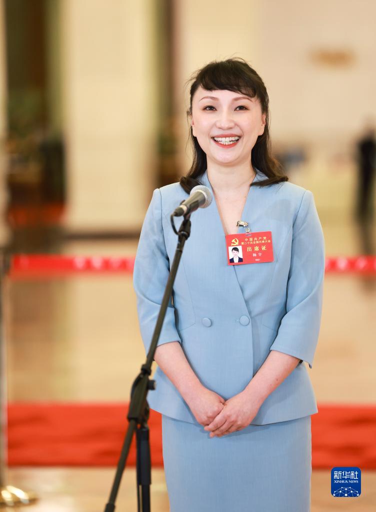 杨宇代表接受采访。新华社
