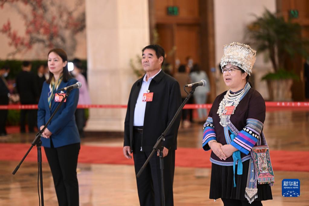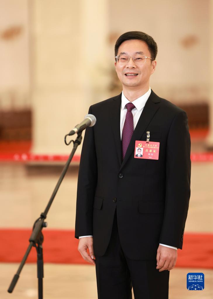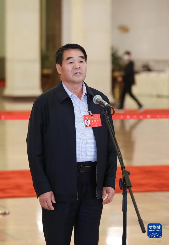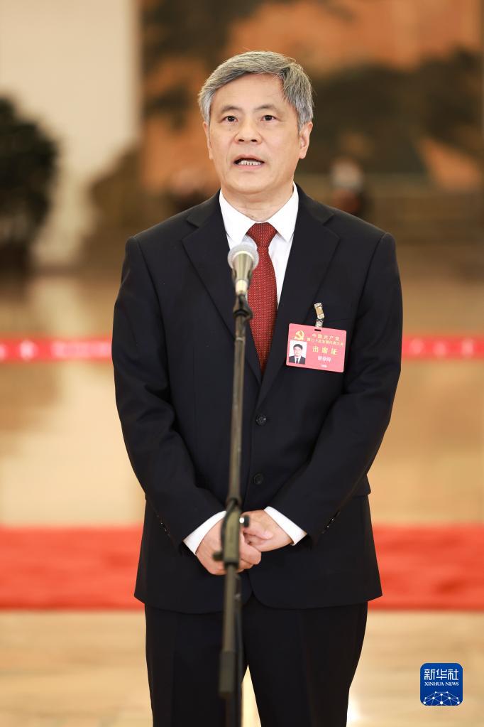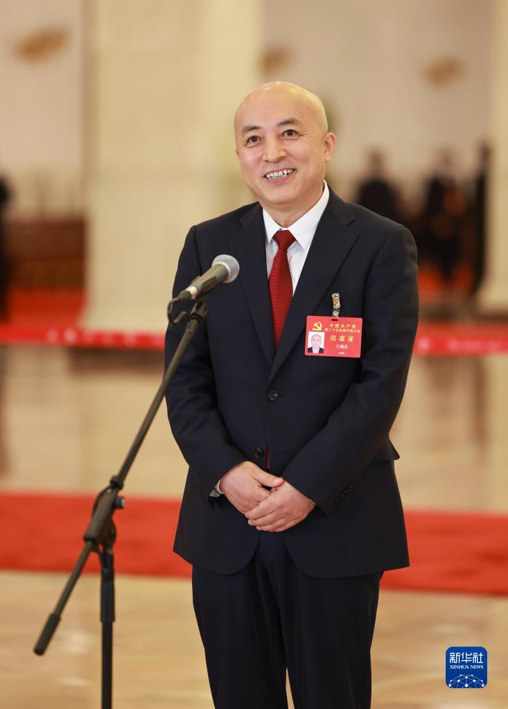 王旭东代表接受采访。新华社