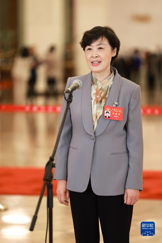 钱素云代表接受采访。新华社