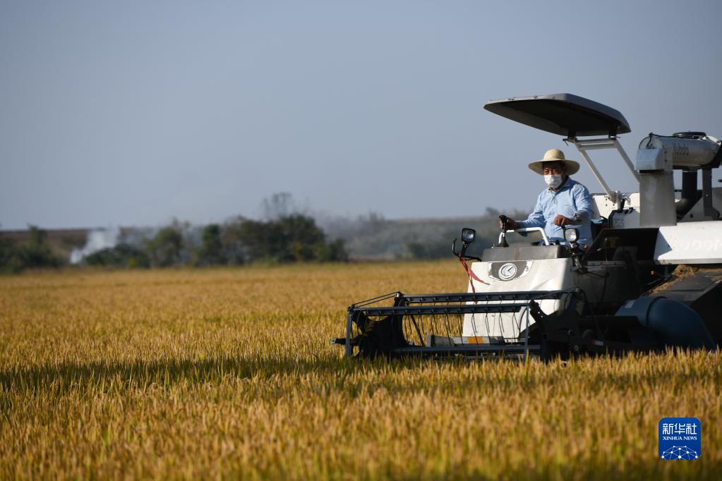 金秋时节,安徽省巢湖市槐林镇大片水稻田迎来丰收。近年来,巢湖市通过化肥减量增效、病虫害绿色防控、高标准农田建设等方式,推进巢湖流域水稻绿色种植工作。图为10月16日,在安徽省巢湖市槐林镇,农机手操作收割机在田间收割水稻。新华社