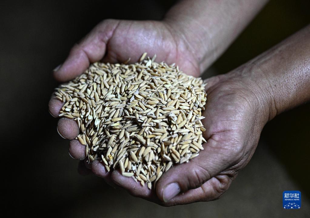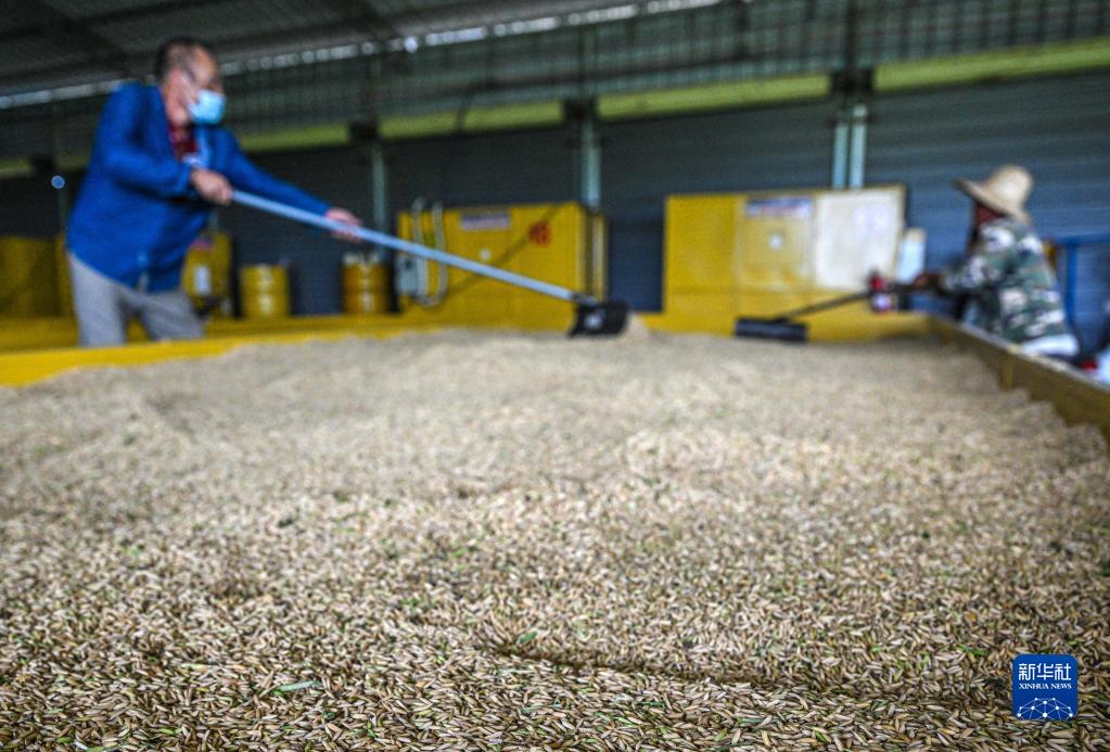 海南省东方市光热和水资源充足,水稻一年三熟,是发展制种产业的理想之地。目前,60多家种业企业在东方市布局制种基地,制种面积达8.2万亩。2022年3月,东方市被认定为中国国家级制种大县。借助相关政策扶持,东方市将建设10万亩高标准制种基地。图为10月15日,工人在位于海南省东方市的海南湘谷源农业有限公司烘干厂忙碌。新华社