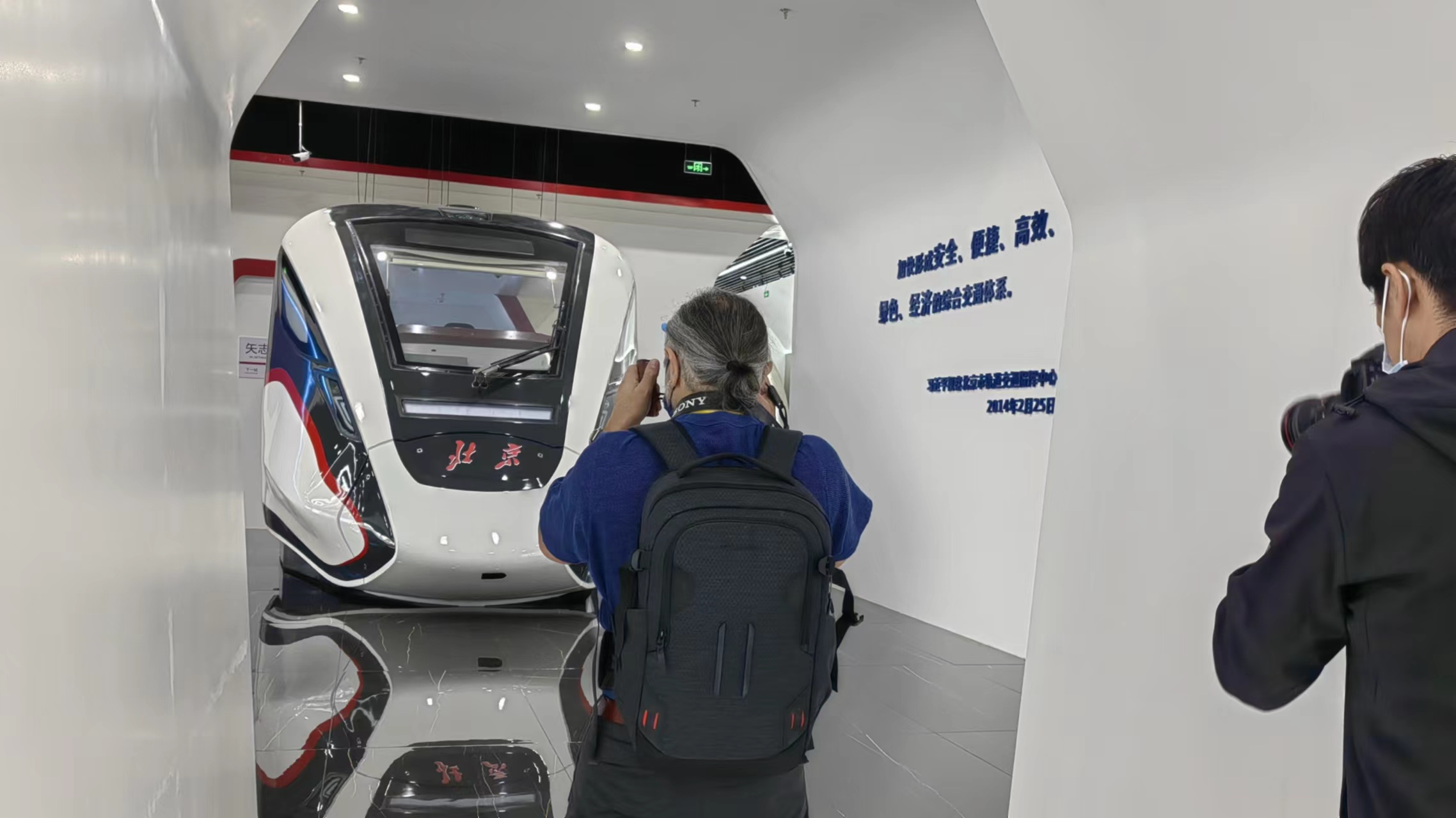10月17日,中共二十大新闻中心为媒体记者组织北京市轨道交通指挥中心参观采访活动,感受北京智慧交通。图为媒体记者在拍摄北京地铁模型。南美侨报特派记者谭欣摄