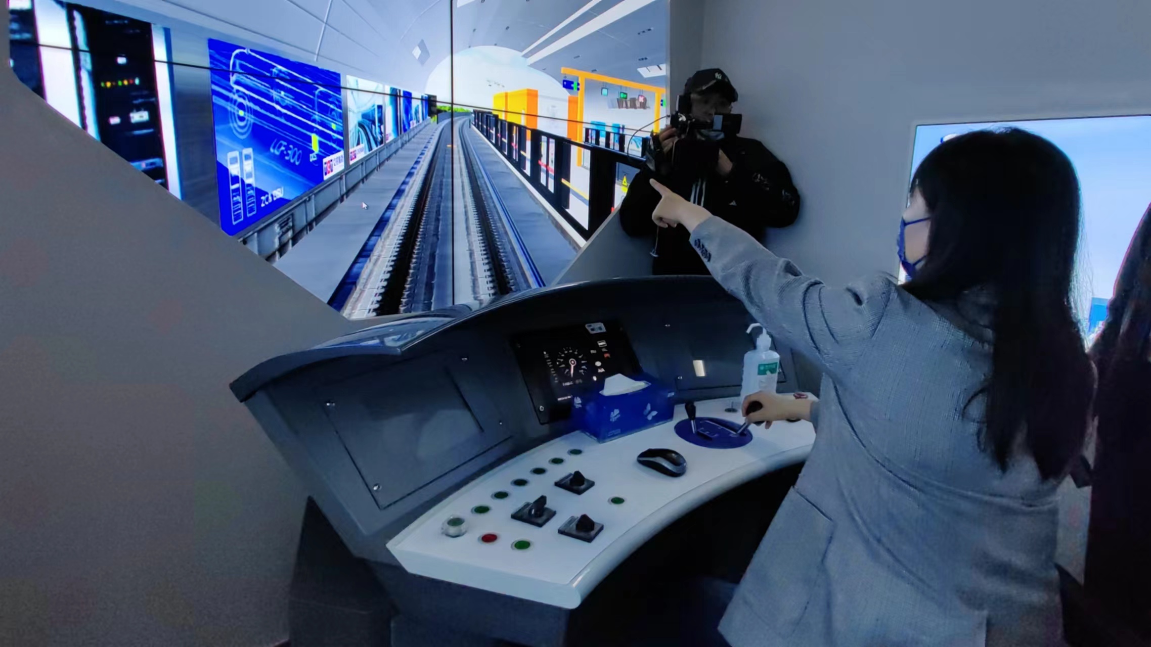 10月17日,媒体记者在北京市轨道交通指挥中心参观采访体验模拟地铁驾驶。中新网