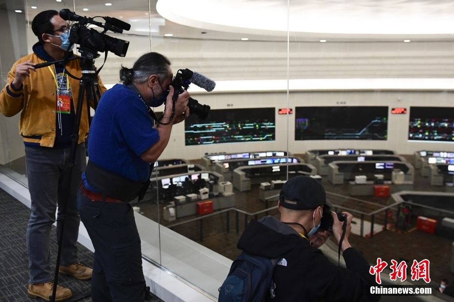 10月17日,媒体记者在北京市轨道交通指挥中心参观采访。中新网