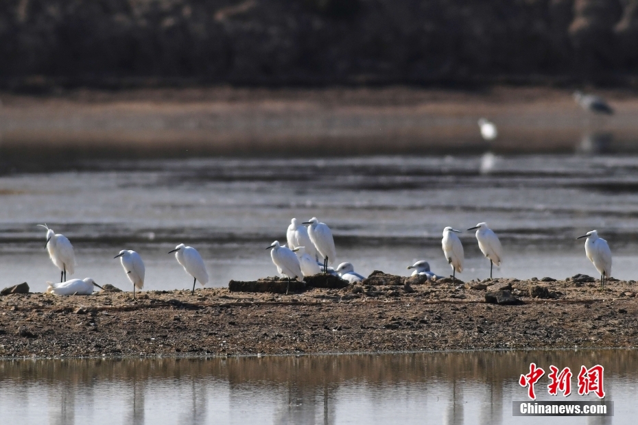 近日,大批候鸟飞抵中国山东省青岛市胶州湾畔的滨海湿地栖息补充体能,部分候鸟将在此越冬。青岛胶州湾是中国沿海重要的鸟区和亚太地区候鸟迁徙线路上的重要驿站。图为成群白鹭在栖息。