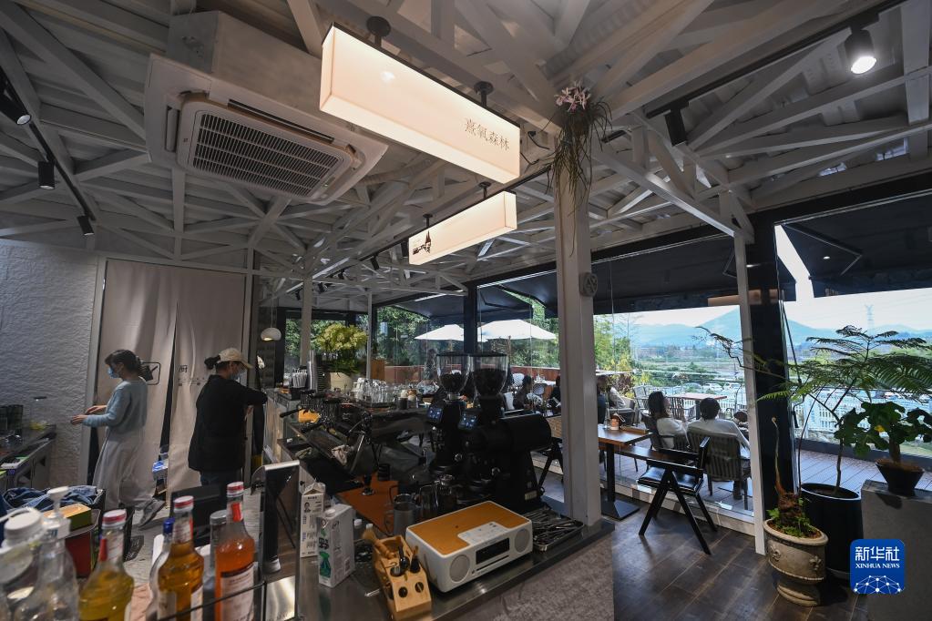 10月26日,依托废弃矿坑建成的红里山村熹氧森林西餐厅吸引了不少市民、游客前来消费体验。新华社