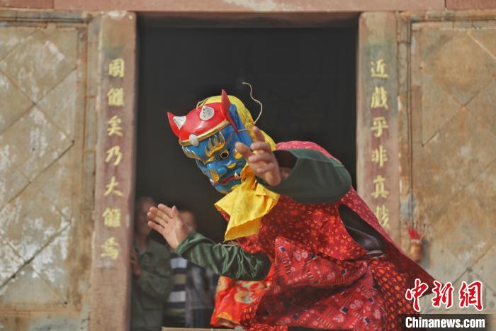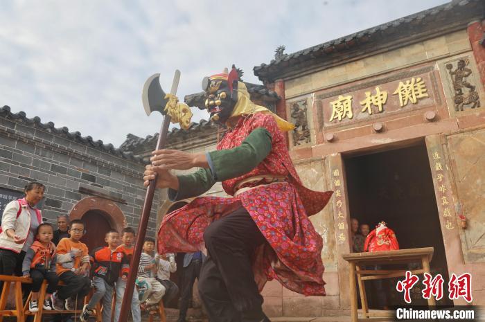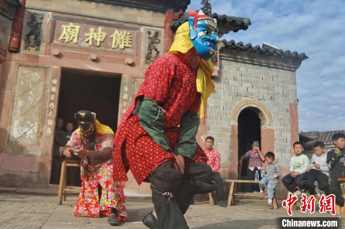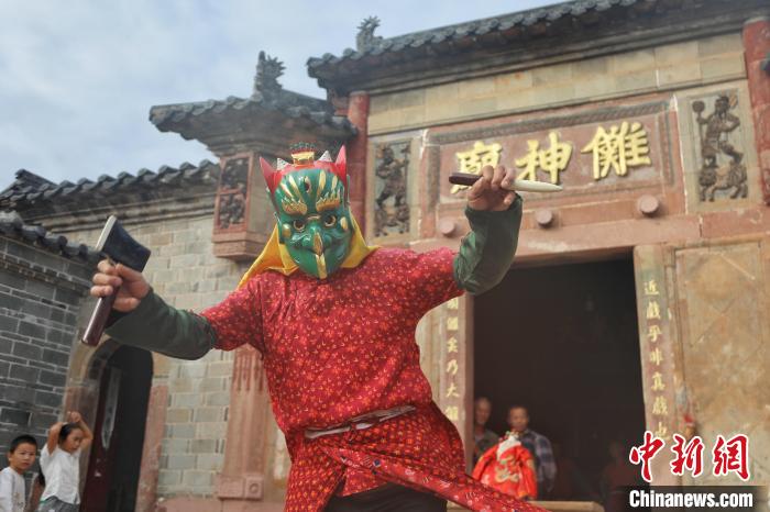 10月29日,身着傩服的演员在南丰县石邮村表演。中新网