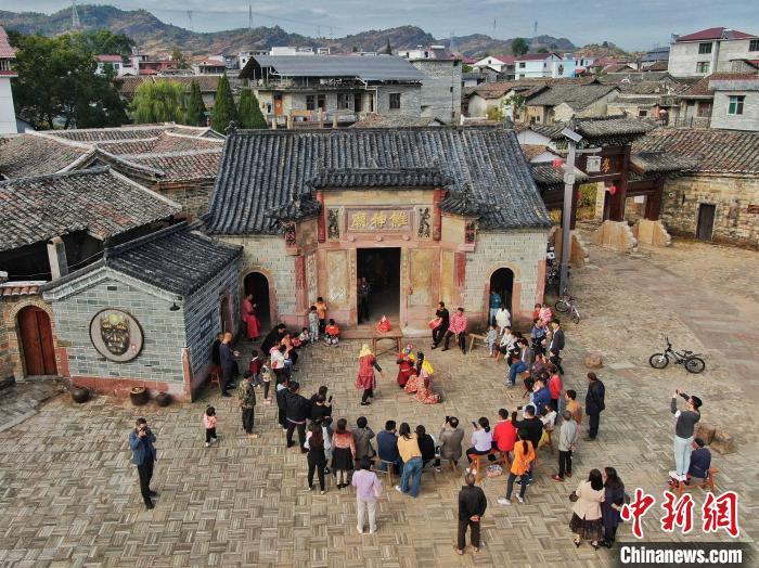 10月29日,无人机航拍南丰县石邮村精彩的跳傩表演。中新网