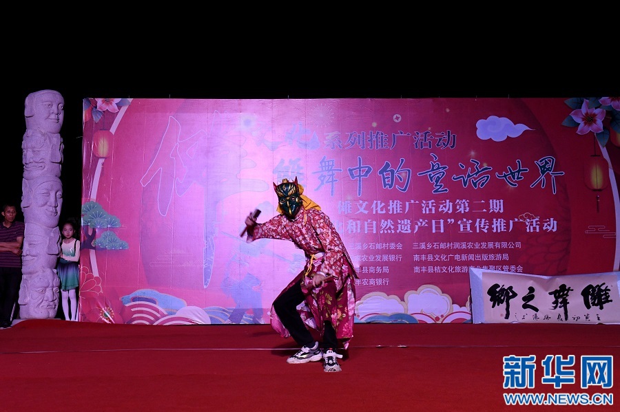 演员在江西省南丰县举办的“傩舞中的童话世界”主题活动中表演。新华网