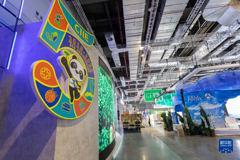 10月31日拍摄的布置中的第五届进博会展区。新华社