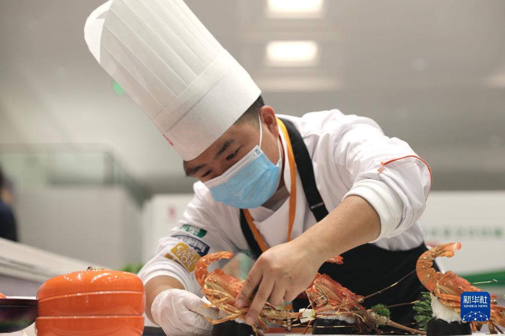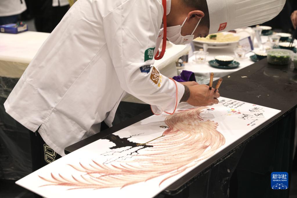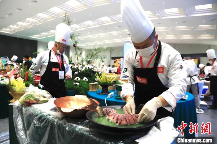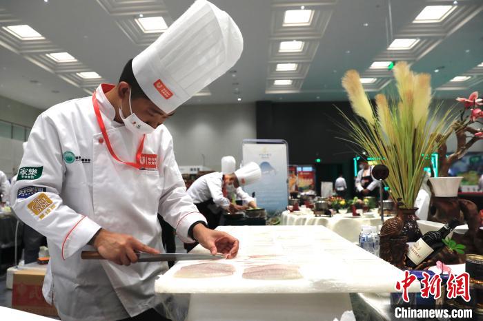 11月3日,以“让世界爱上川菜”为主题的第五届世界川菜大会在四川雅安开幕。川菜领域专家学者以及中国美食行家、川菜品牌企业代表等齐聚一堂,共话川菜产业创新发展。大会期间开展川菜烹饪技能大赛、川味小吃大赛、火锅宴大赛等活动,大厨们现场制作菜品,评委现场品鉴打分,同行互相切磋学习,参观食客们一饱口福,共享川菜盛宴。图为一名厨师正在摆放切好的鱼。中新网