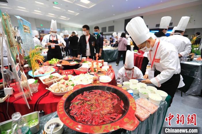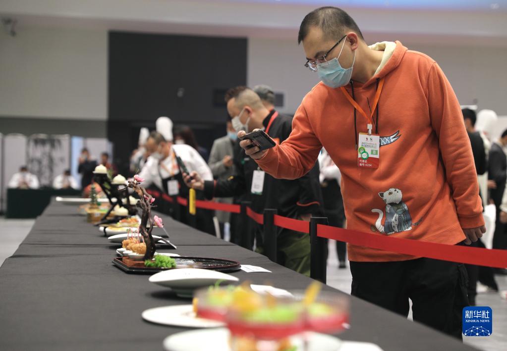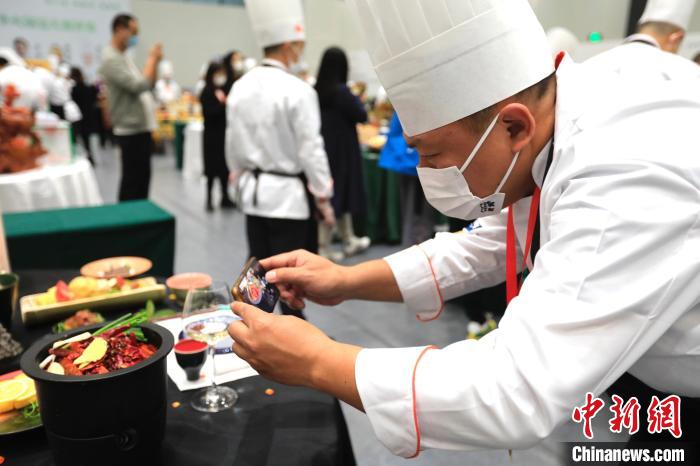 11月3日,厨师在世界川菜烹饪技能大赛暨川味小吃大赛上展示作品。新华社