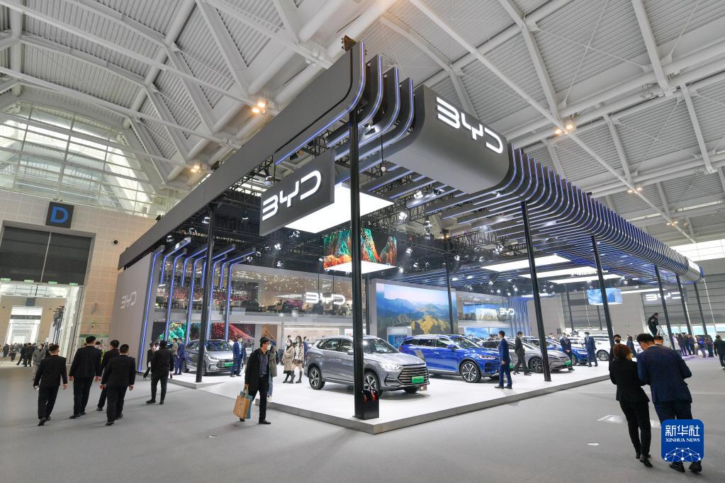 这是11月10日在2022中国(天津)国际汽车展览会上拍摄的比亚迪汽车展台。