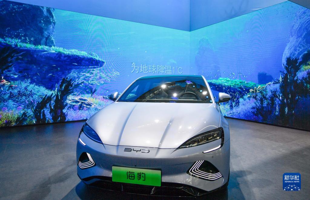 这是11月10日在2022中国(天津)国际汽车展览会的比亚迪汽车展台拍摄的纯电动汽车“海豹”。