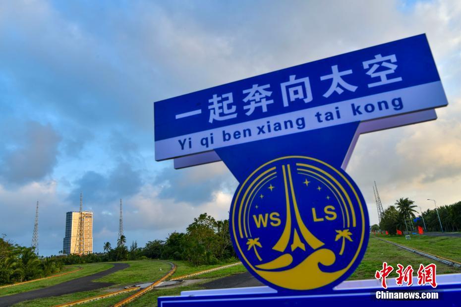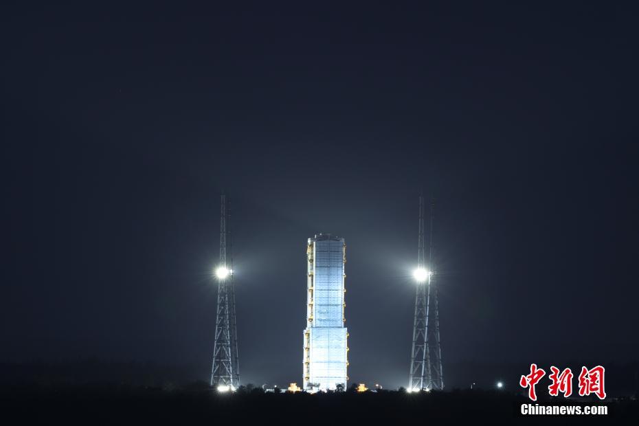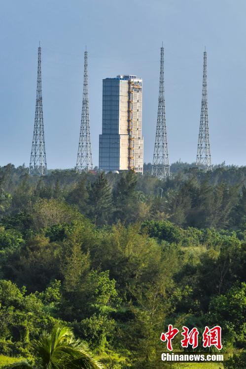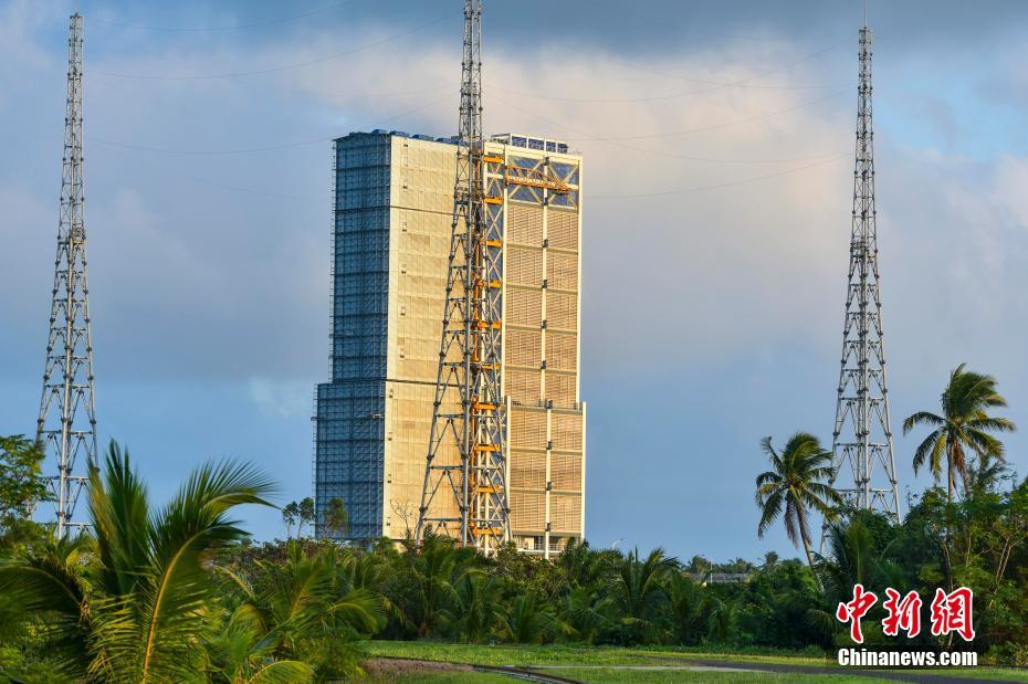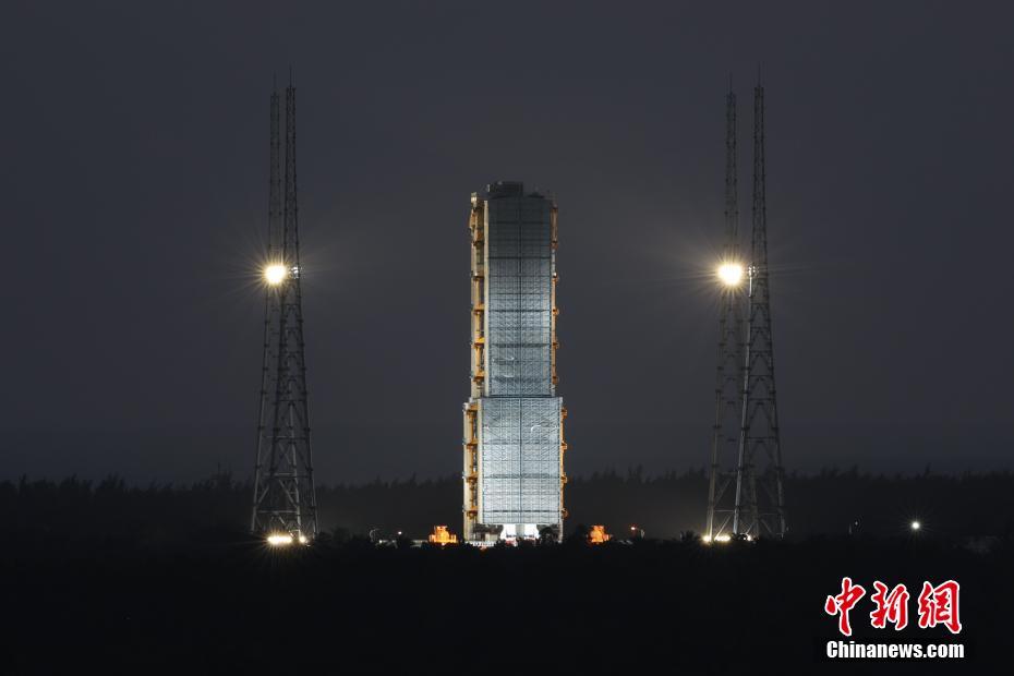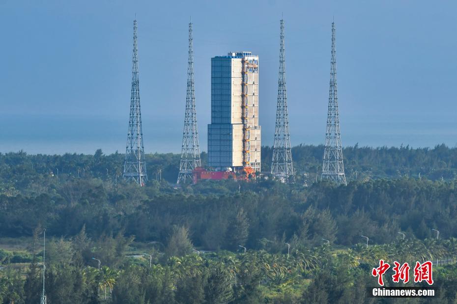11月11日,海南省文昌市的中国文昌航天发射场内,天舟五号货运飞船与长征七号遥六运载火箭组合体在发射塔架上整装待发,计划于近日择机实施发射。 中新社