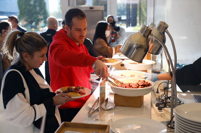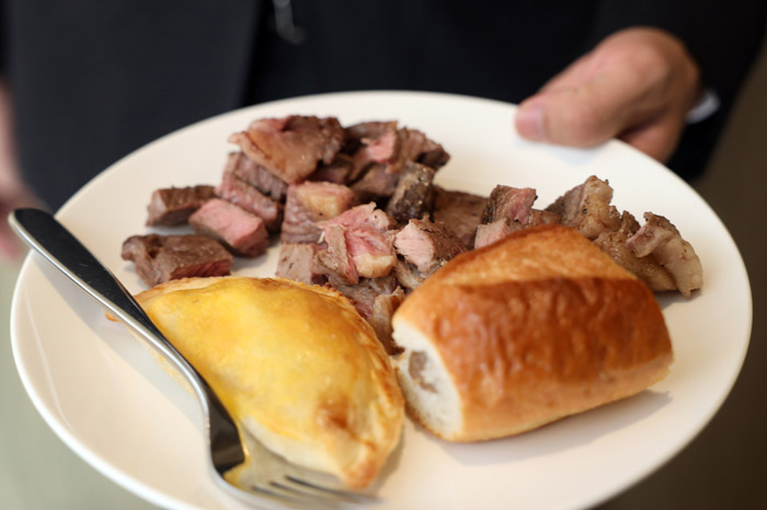 11月13日,民众活动现场品尝阿根廷进口牛肉和。南美侨报网特约记者卞程宣摄