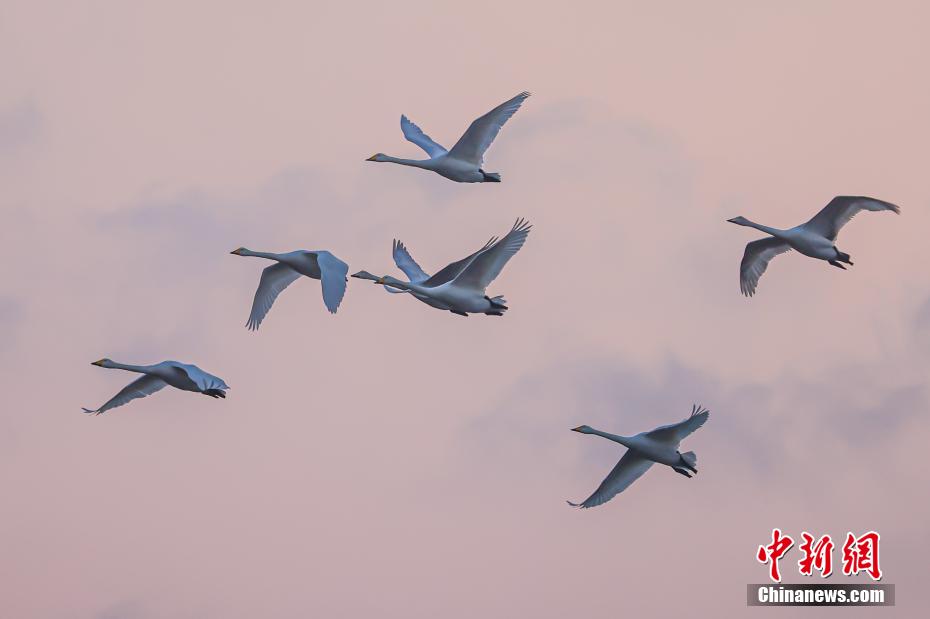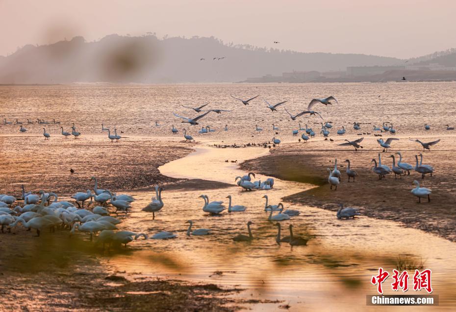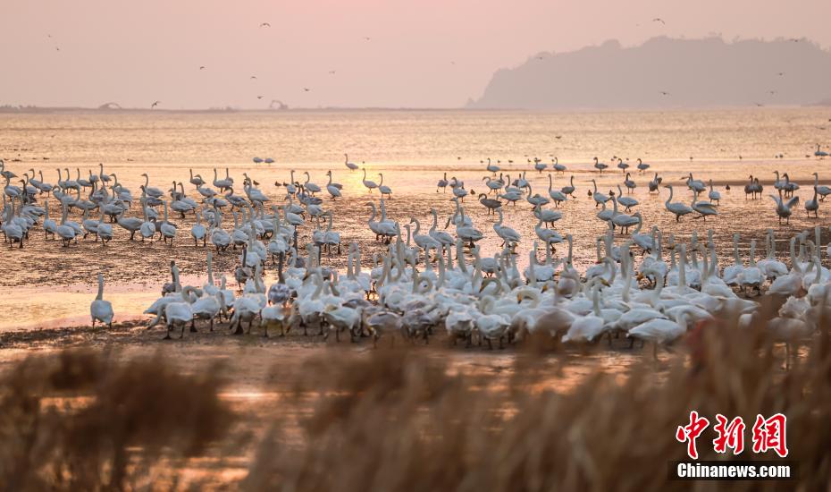 近日,大批大天鹅飞抵山东省荣成市成山镇天鹅湖湿地栖息越冬,场面蔚为壮观,吸引众多游客前来欣赏。 中新网