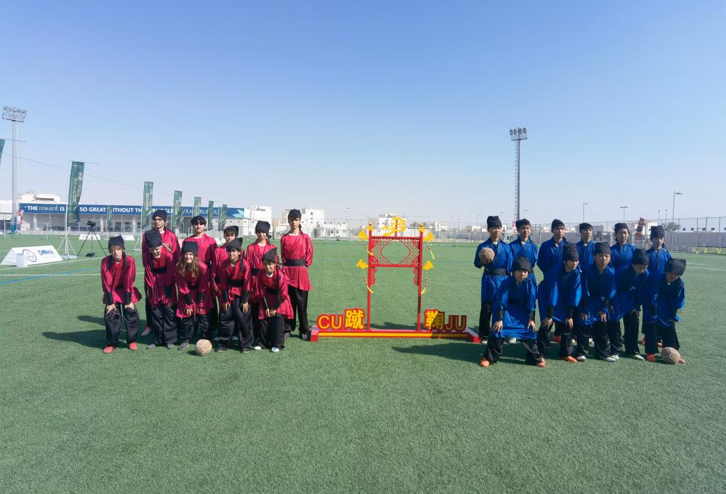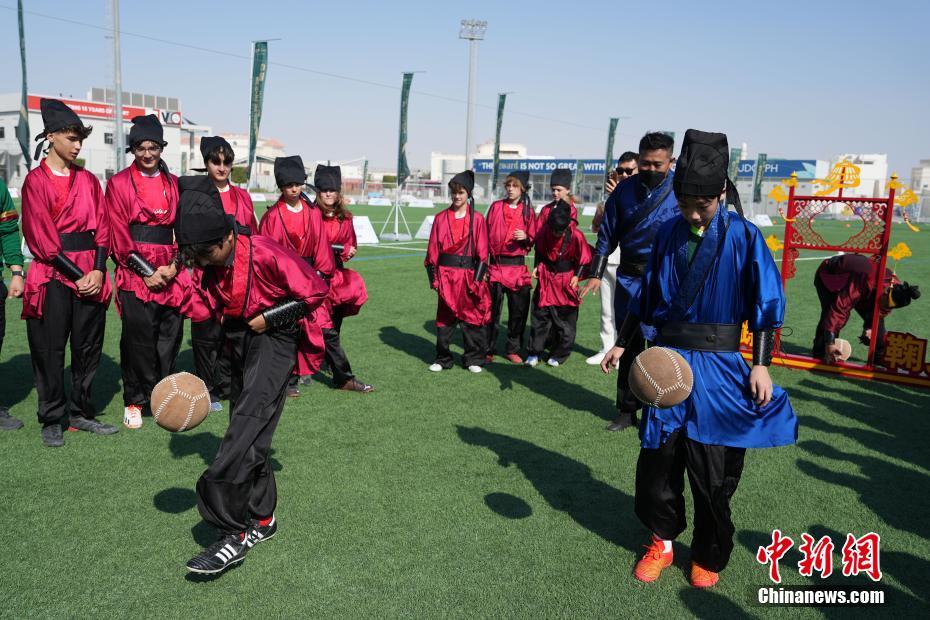 世界杯期间,中国蹴鞠通过多种形式亮相卡塔尔。11月21日,中国—卡塔尔青少年友谊赛、中卡青少年蹴鞠交流体验活动在卡塔尔多哈足球训练中心共同举行。