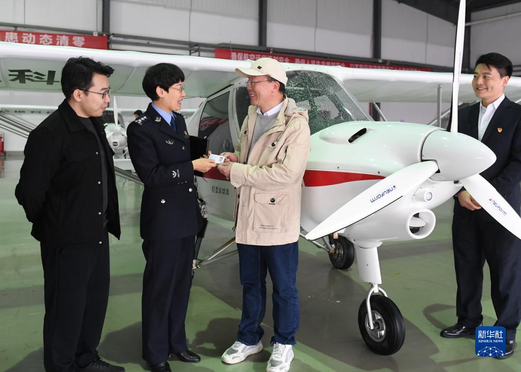 11月22日,在新昌县万丰航空特色小镇,当地出入境管理大队工作人员为一名英籍华人专家(右二)送去永久居留证。