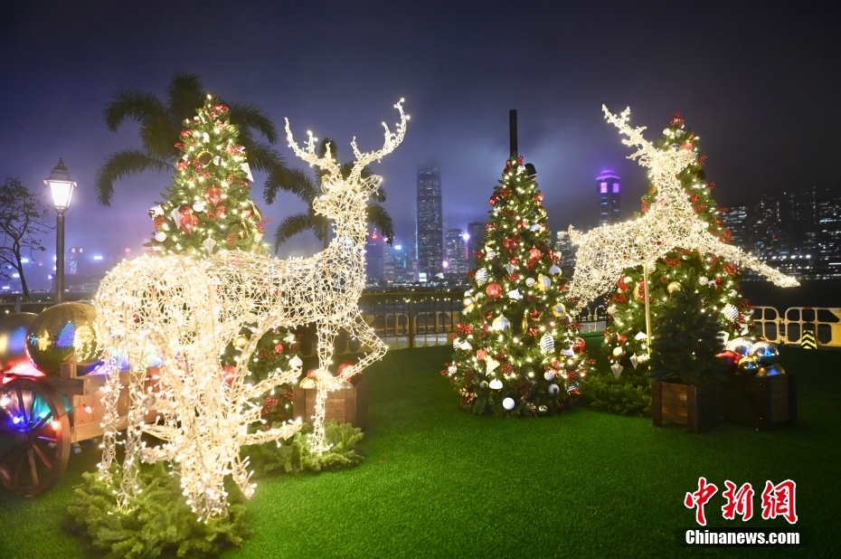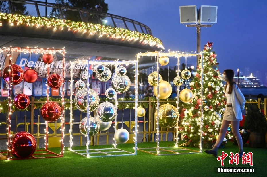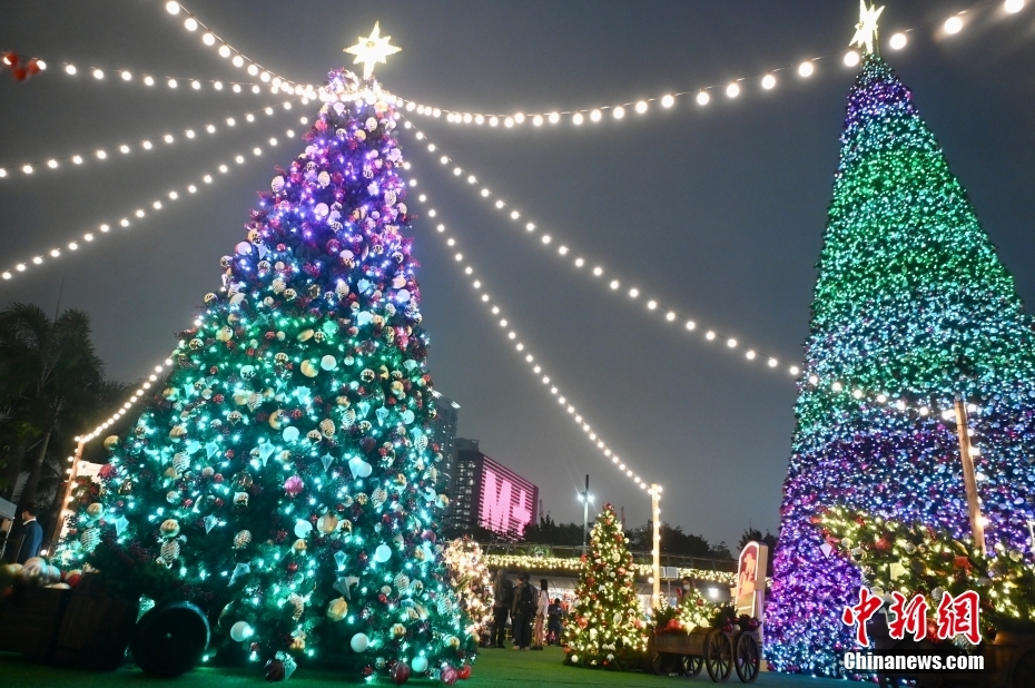 11月24日,香港旅游发展局举办缤纷冬日巡礼活动,于西九文化区艺术公园设置超过6层楼高的巨型圣诞树及灯饰与市民迎接圣诞。图为西九文化区的艺术公园内的圣诞装饰。