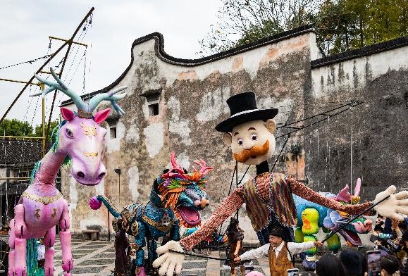 在乌镇西栅街头进行的古镇嘉年华演出。中新网