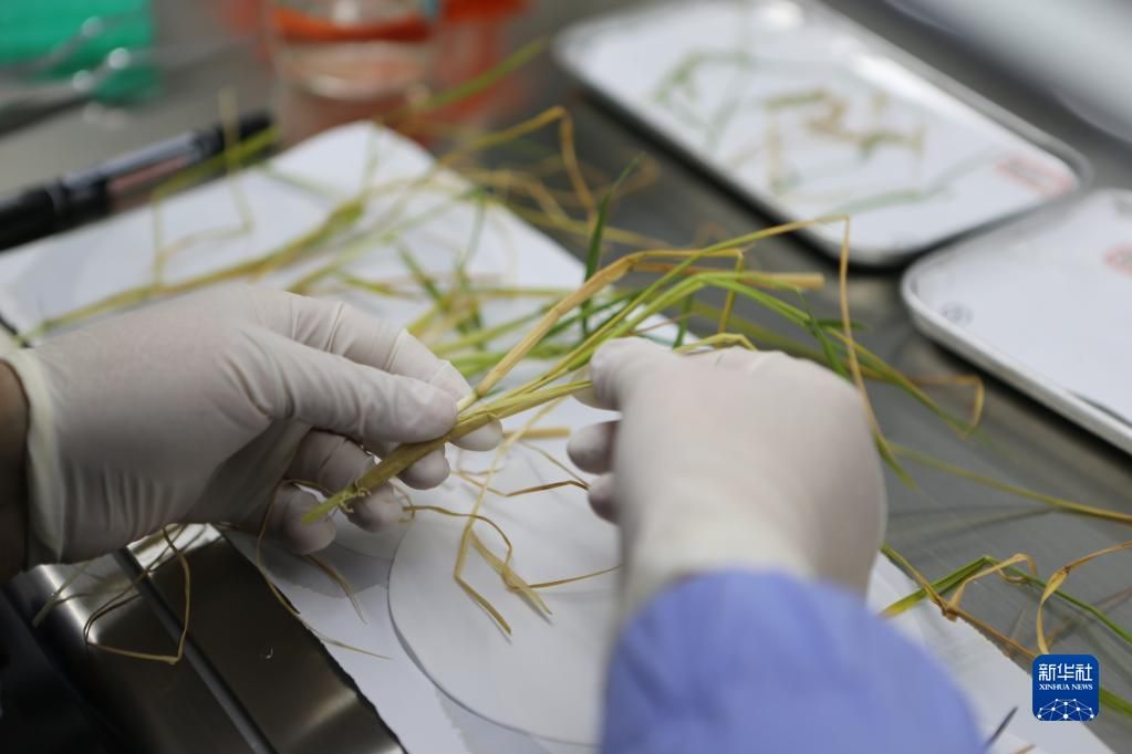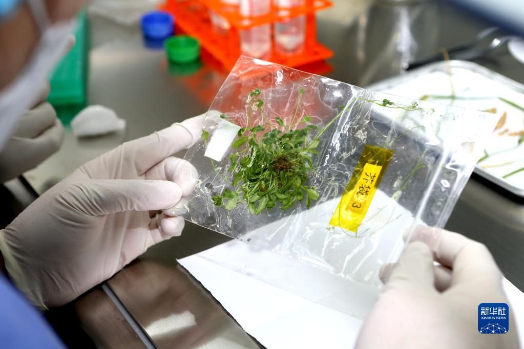 12月5日,在中科院空间应用中心生物实验室,中科院分子植物科学卓越创新中心郑慧琼研究员处理从太空归来的拟南芥样品。新华社