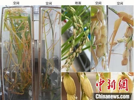 空间水稻原生稻和再生稻的图片,显示空间稻穗与颖壳张开的表型。中新网/中科院空间应用中心