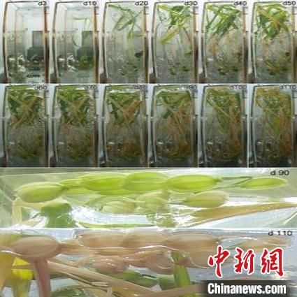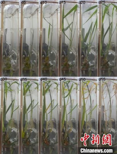 水稻在问天舱生命生态实验柜通用生物培养模块中完成从种子到种子全生命周期不同发育阶段代表性图片。中新网/中科院空间应用中心