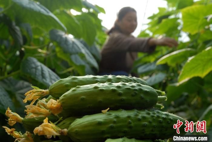 12月7日,山东青岛市即墨区农民在蔬菜大棚中采摘黄瓜。中新网