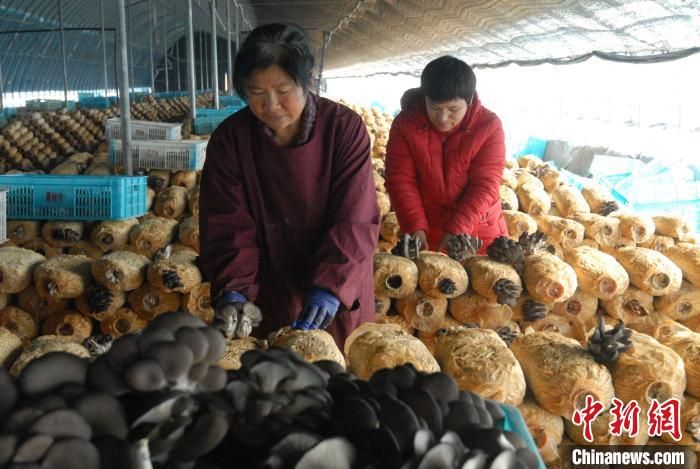 12月7日,山东青岛市农民在采摘蘑菇。中新网