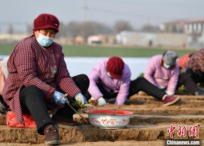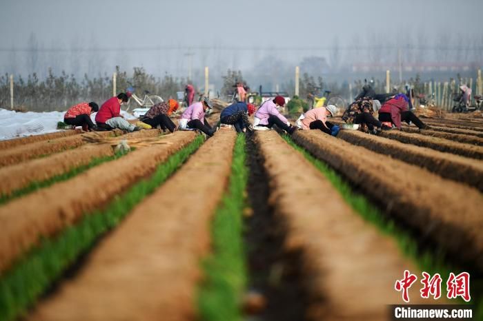 12月7日,河北石家庄市栾城区前小梅村,农民种植大葱苗。中新网