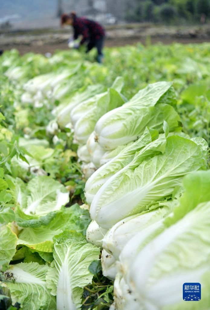 12月7日,湖北省宣恩县晓关侗族乡张官村蔬菜专业合作社社员在抢收大白菜。新华社