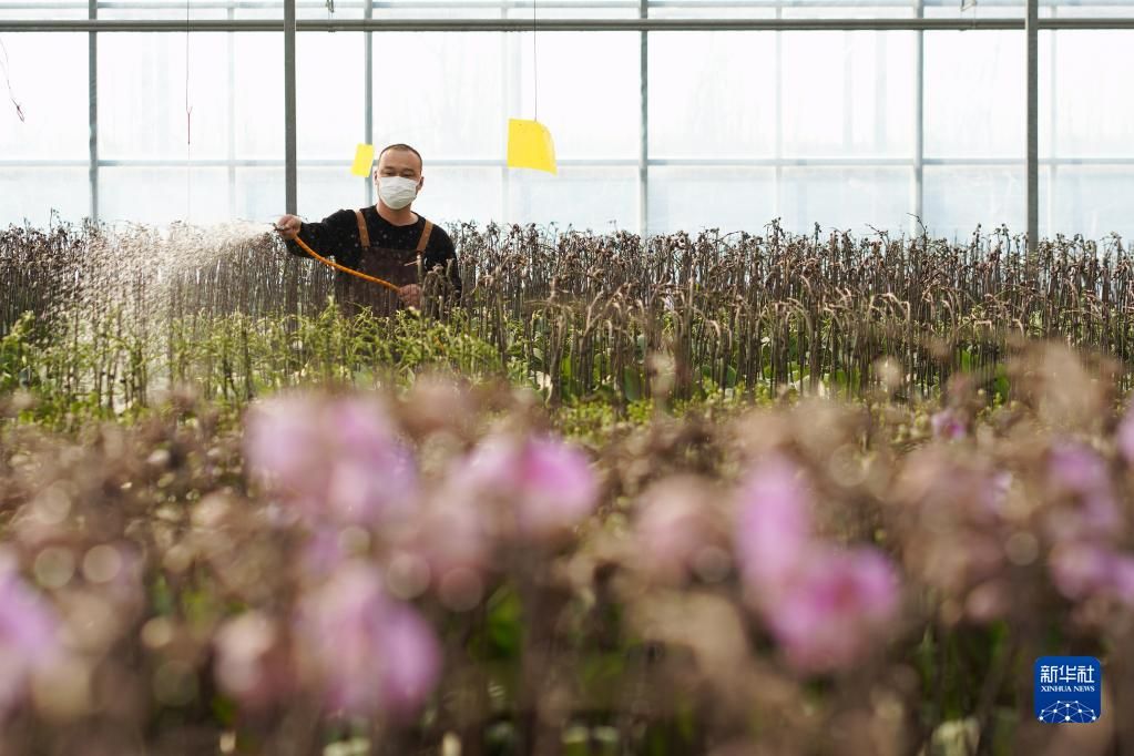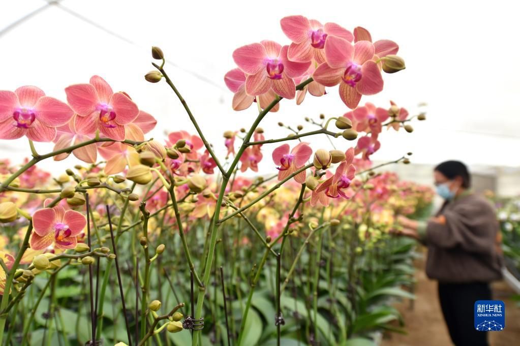12月7日,河北省邢台市内丘县一处农业生态园的员工在温室大棚里管护蝴蝶兰。新华社