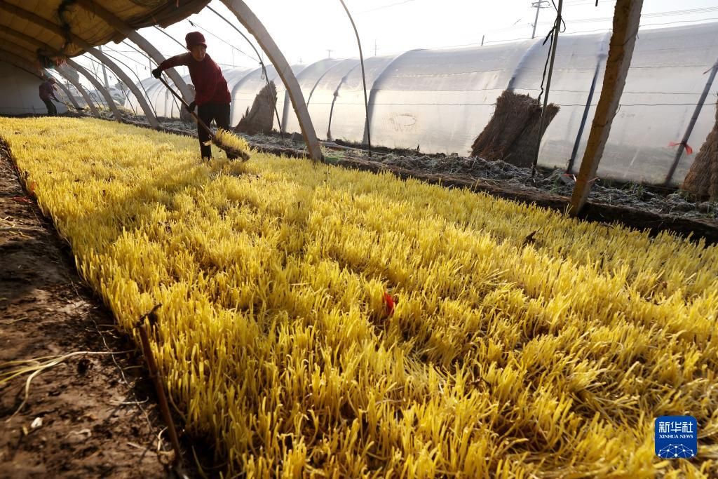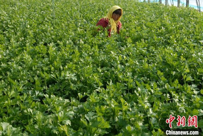 12月7日,山东青岛市即墨区农民在蔬菜大棚中管护芹菜。中新网