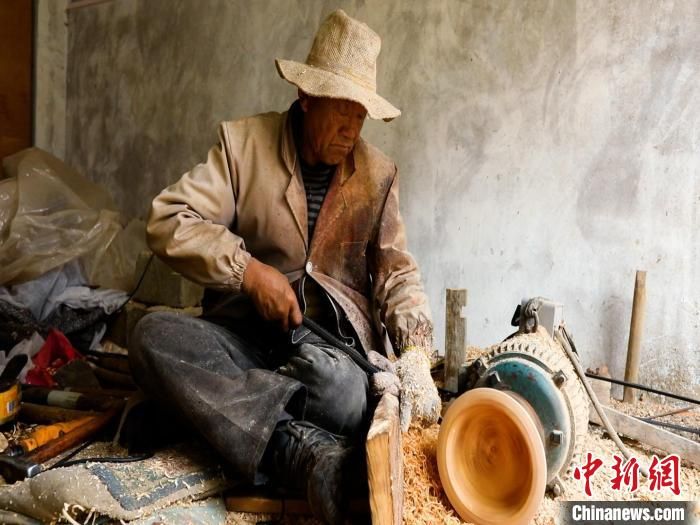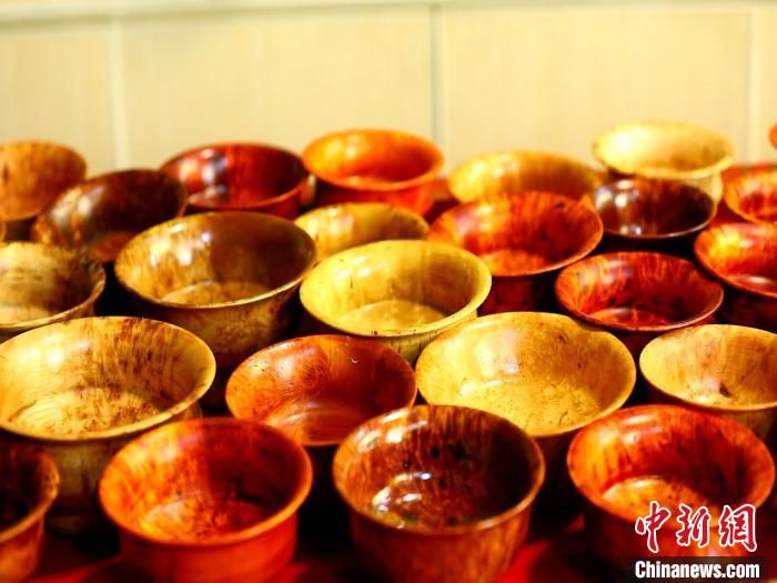 近年来,西藏自治区大力支持传统手工艺产业发展,加强非遗保护,鼓励特色文化产品创新。林芝市通过发展西藏的木碗制作技艺、氆氇、藏香加工等传统手工艺,助力当地群众脱贫增收。 成立于2016年的西藏林芝市米林县卧龙镇塘崩巴村木碗合作社,通过培养学徒、带动困难家庭、开设实体店等方式,不仅传承木碗制作技艺,也带领村民走上致富路。图为各种木碗成品。中新网