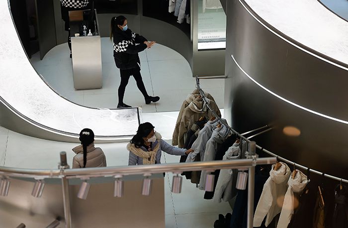 12月9日,消费者在北京王府井附近商场内选购服饰。南美侨报网特约记者王楠摄