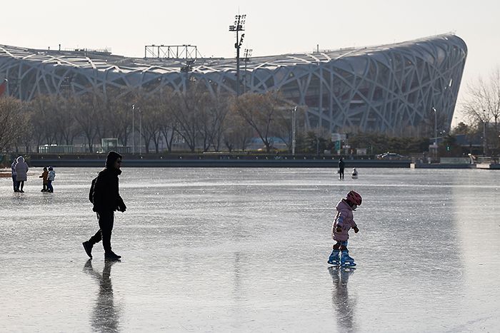 12月9日,市民在北京奥林匹克公园体验冰上运动。南美侨报网特约记者王楠摄