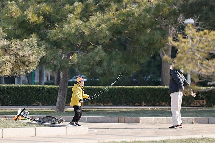 12月9日,一名小朋友跟家人在公园内锻炼身体。南美侨报网特约记者王楠摄