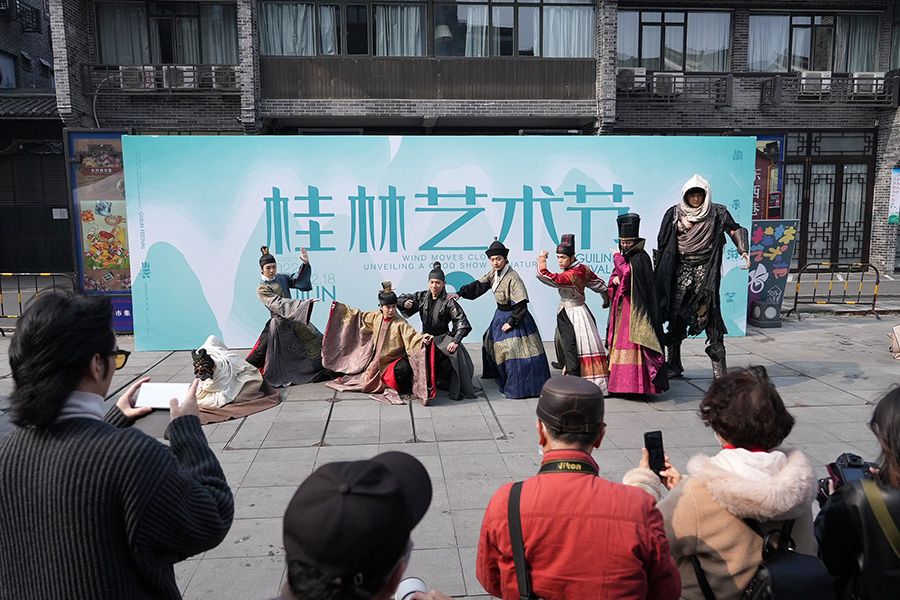 演员在桂林市东西巷巡游演出。新华社