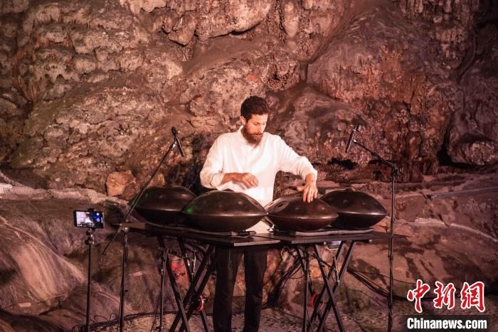 12月11日,2022桂林艺术节期间,被称为“鬼手”的以色列手碟演奏家Liron Man(李荣满)在广西桂林市七星岩溶洞内,为听众们带来精彩的手碟演奏“远山淡影”。手碟是一种打击乐器,声音空灵神秘,被誉为天籁之音。中新网