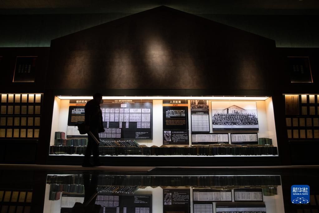 12月10日,在侵华日军第七三一部队罪证陈列馆内,一名工作人员观看完成改陈的展区。新华社