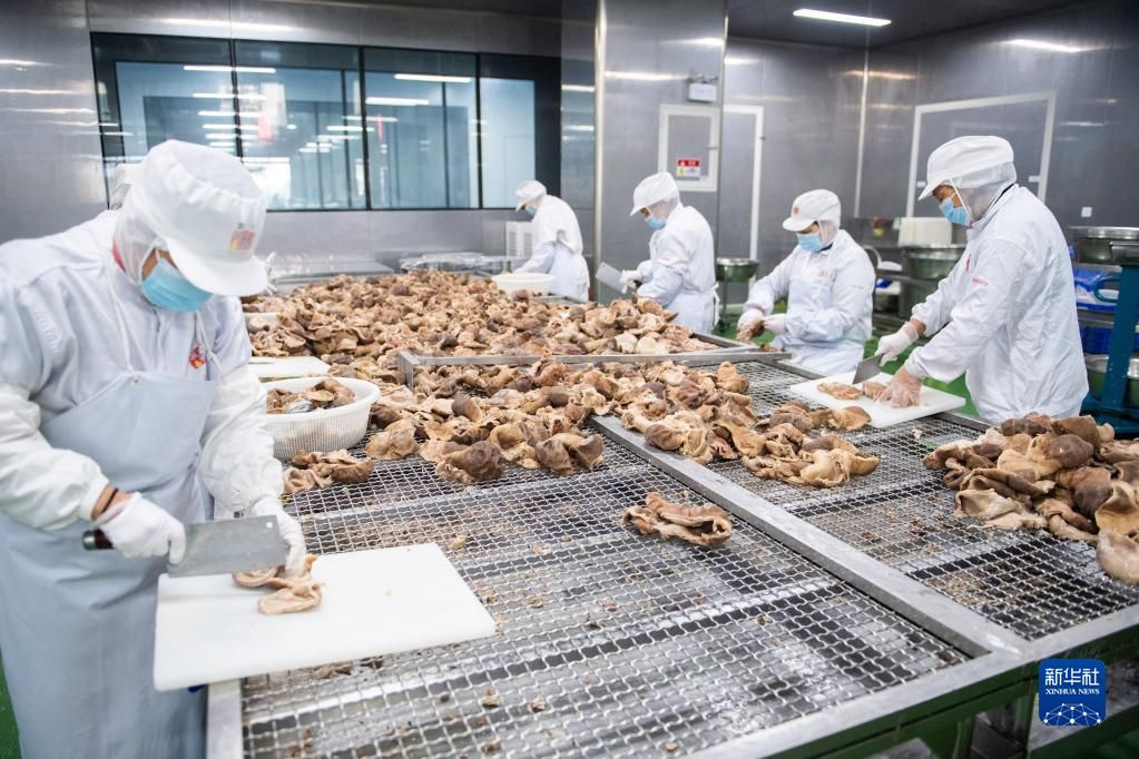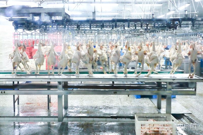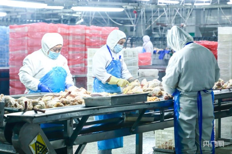 新疆帕戈郎食品有限公司黄麻鸡加工生产线。央广网
