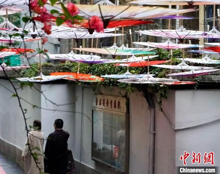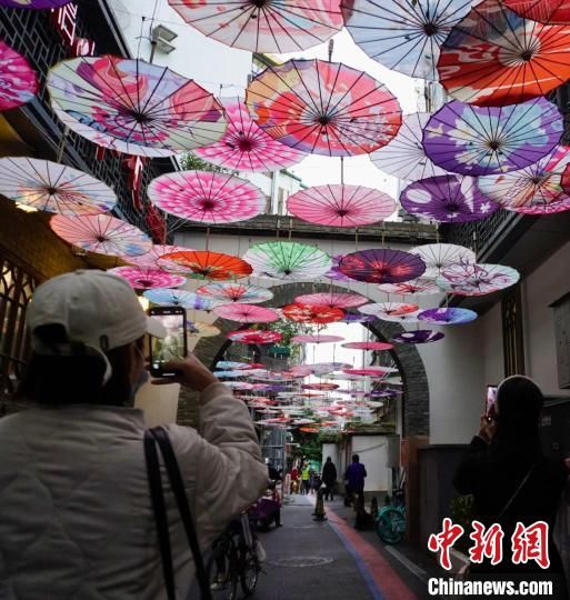 福州一条名叫“北后”的古巷,装饰了大量“福州三宝”之一的油纸伞。伞上绘有动漫人物及各类花卉,缤纷绚烂的同时不失悠扬古韵,引得市民驻足拍照。中新网