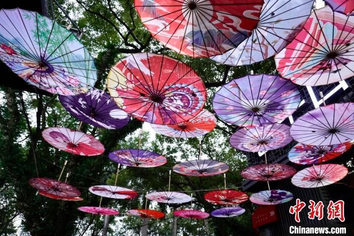 伞上绘有动漫人物及各类花卉,缤纷绚烂的同时不失悠扬古韵,引得市民驻足拍照。中新网